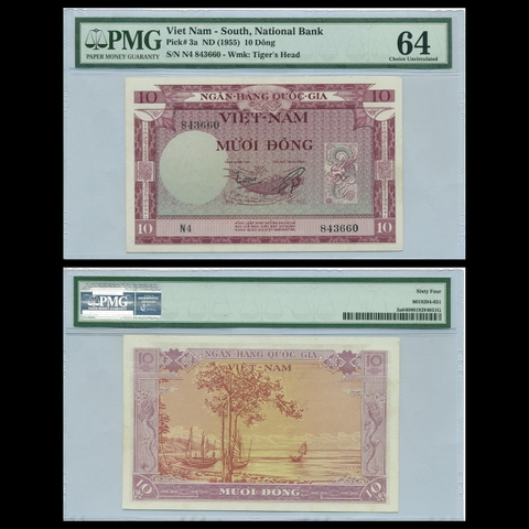 10 đồng, Cá chép, con thuyền , bến nước 1955 VNCH