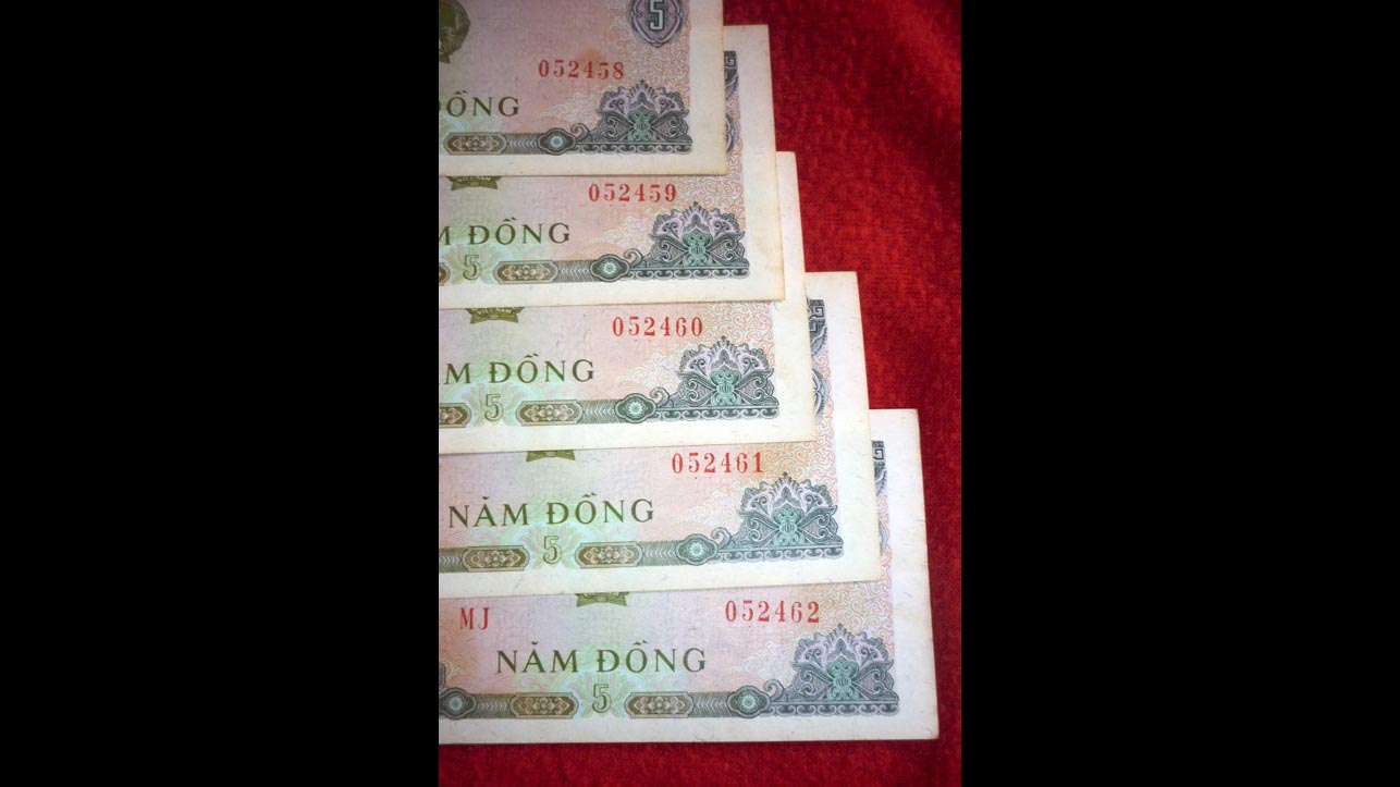Seri tờ 5 đồng phát hành năm 1976 của Việt Nam đã hết giá trị lưu hành được rao bán với giá gần 20 USD trên mạng Ebay.