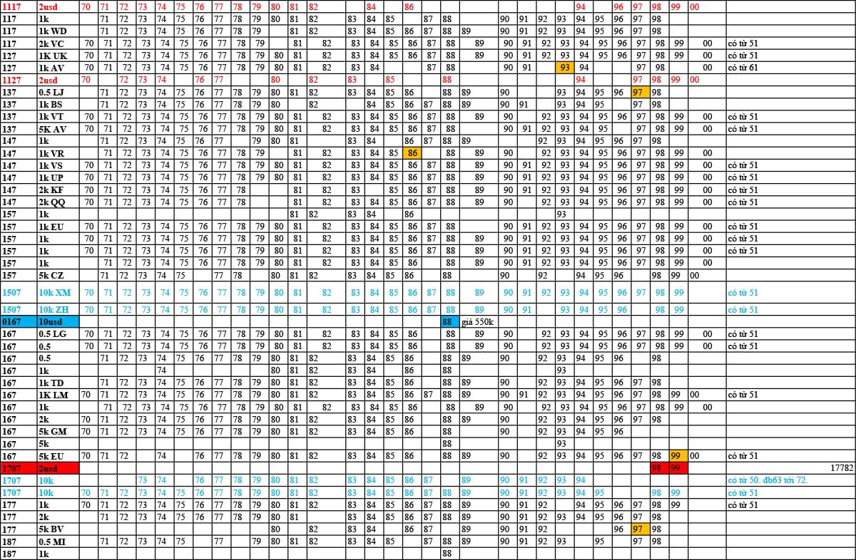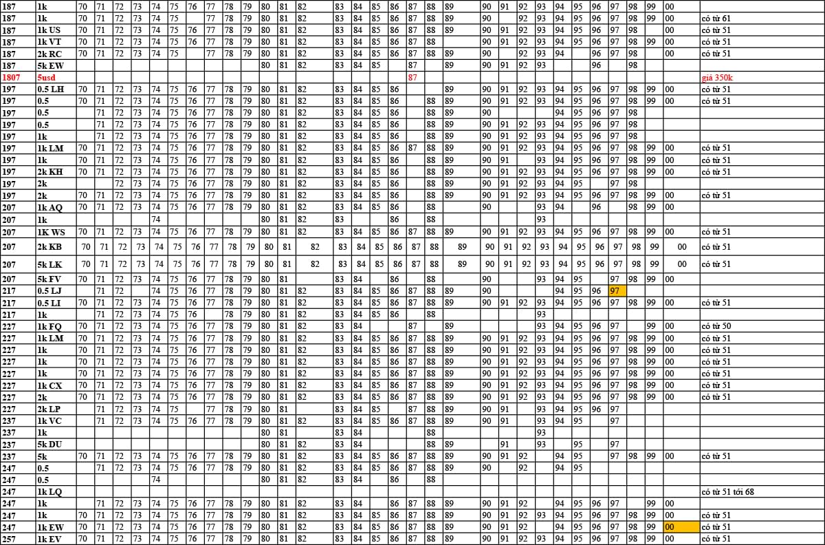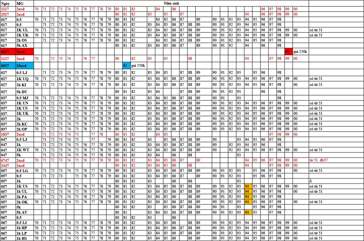 Cách thức tra cứu Tiền Năm Sinh: tìm kiếm theo ngày sinh ( dòng hàng ngang) sau đó tìm theo năm sinh theo các cột bên cạnh ( có hai bản năm 19xx và 20xx) để tìm được tiền năm sinh có số seri là ngày sinh nhật hoặc một ngày quan trọng của mình