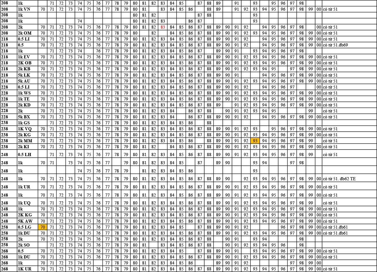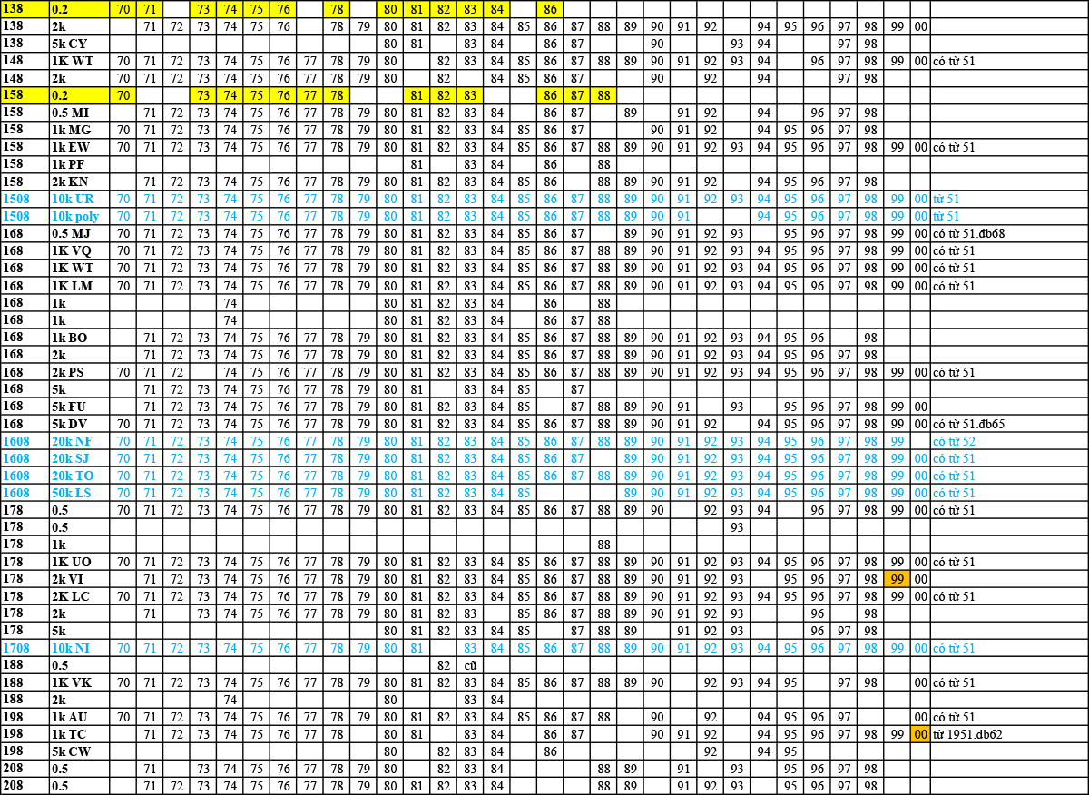 BẢNG NĂM SINH THÁNG 08 NĂM 19XX
