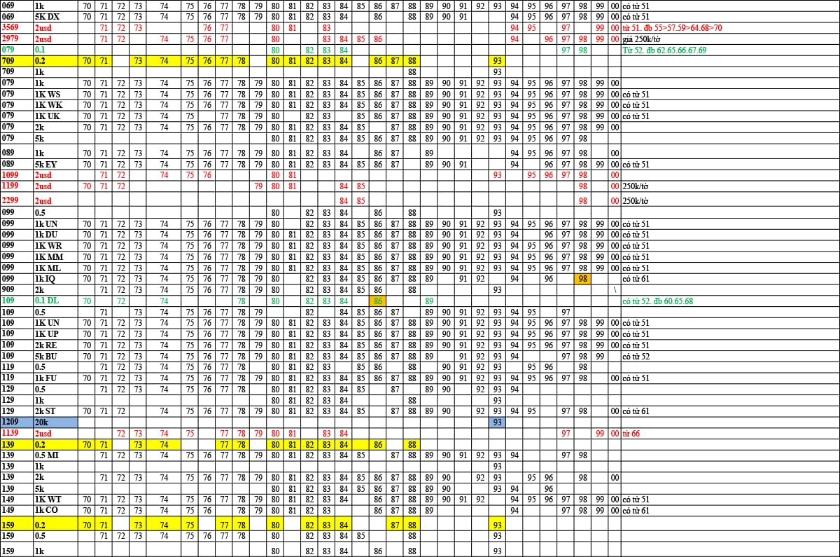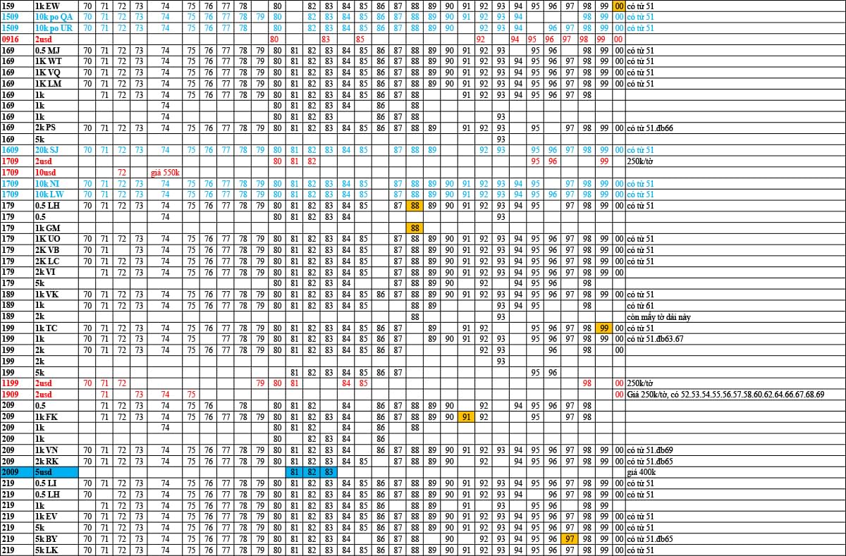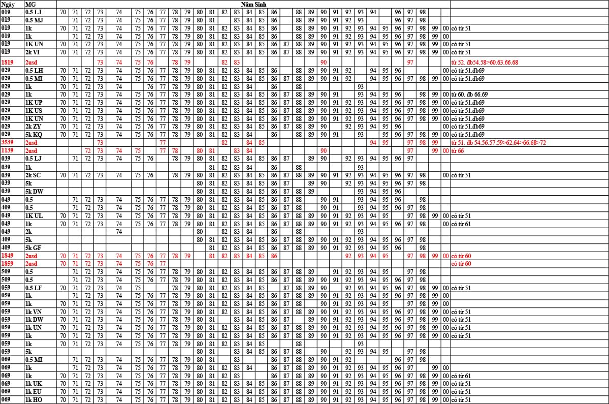 Cách thức tra cứu Tiền Năm Sinh: tìm kiếm theo ngày sinh ( dòng hàng ngang) sau đó tìm theo năm sinh theo các cột bên cạnh ( có hai bản năm 19xx và 20xx) để tìm được tiền năm sinh có số seri là ngày sinh nhật hoặc một ngày quan trọng của mình